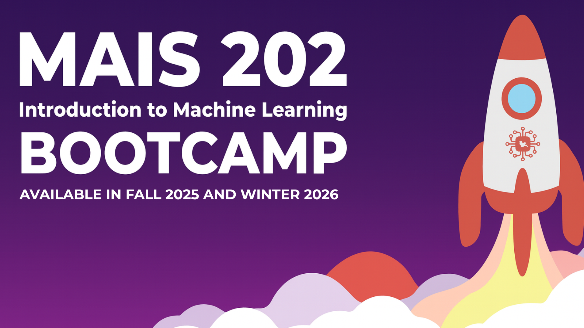 Kickstart your AI journey with MAIS 202, our fast introductory course to Machine Learning! Whether you're a beginner or looking to deepen your core understanding of ML, this course is designed to equip you with the foundational knowledge and skills. Join us for an engaging semester filled with workshops, hands-on project, interactive lectures, and collaborative learning. Don't miss this opportunity to explore the exciting world of AI and connect with fellow enthusiasts!